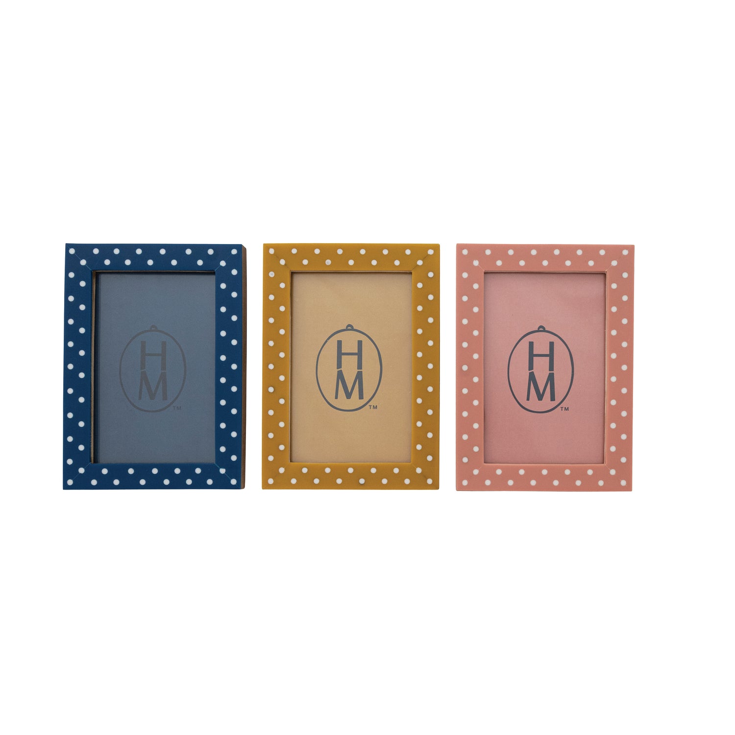 Add a little whimsy to your home with these adorable polka dot photo frames, made from durable MDF and resin. Available in three bright, cheerful colors, they’re perfect for showing off your favorite memories in a fun and stylish way. Whether you’re decorating a nightstand, bookshelf, entry table, or gallery wall, these frames instantly add a pop of personality to any room. Pick one favorite shade or mix and match for an extra cute, eclectic look—because your photos deserve to be displayed with a little flair. Mix and match with our entire Hazel Mazel photoframe collection to add a touch of pizzazz to your memories.